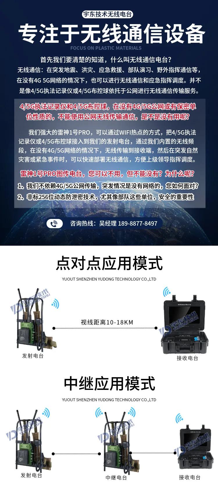 宇東技術(shù)雷神1號PRO背負(fù)式高清單兵無線圖傳電臺,是公司針對應(yīng)急救援指揮、部隊(duì)拉練演習(xí)、公安、反恐作戰(zhàn)、消防救援、邊防執(zhí)勤、海警海關(guān)巡檢、森林消防等,在突發(fā)重大事件,斷網(wǎng)斷電,通信中斷的情況下,現(xiàn)場工作人員通過宇東雷神1號PRO單兵無線圖傳電臺,可以和指揮部雙向語音通話對講,把現(xiàn)場采集的數(shù)據(jù)實(shí)時無線傳輸?shù)街笓]車/臨時指揮部大屏幕,讓指揮部領(lǐng)導(dǎo)對現(xiàn)場情況一目了然,節(jié)省了到達(dá)現(xiàn)場的時間,可快速做緊急指揮調(diào)度,最大限度的減少突發(fā)事件帶來的各種損失。
